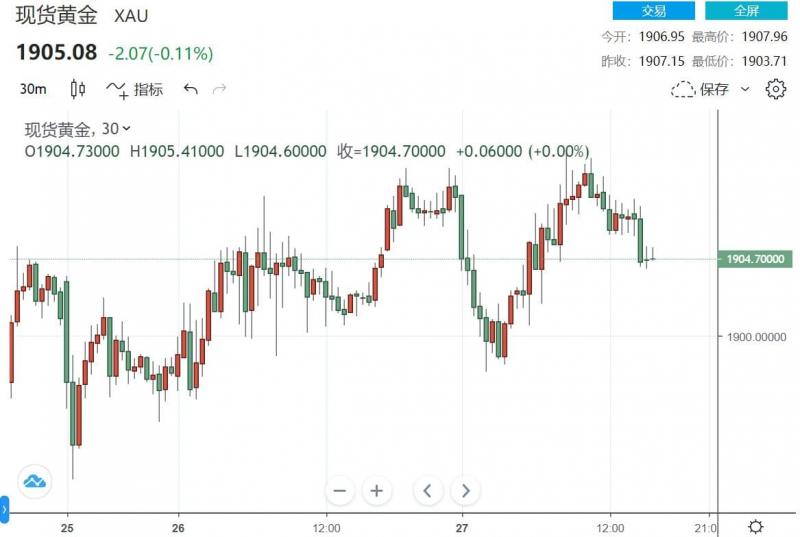 周三(10月28日),亚市早盘,金价未能延续此前的涨幅,小幅下跌0.11%至1905.08美元/盎司。随着美国在下周大选前出台经济刺激计划的可能性减弱,市场波动性仍在上升。与此同时,投资者正在考虑严重的疫情对经济的影响,法国已经宣布计划从周四午夜开始实行为期一个月的封锁。