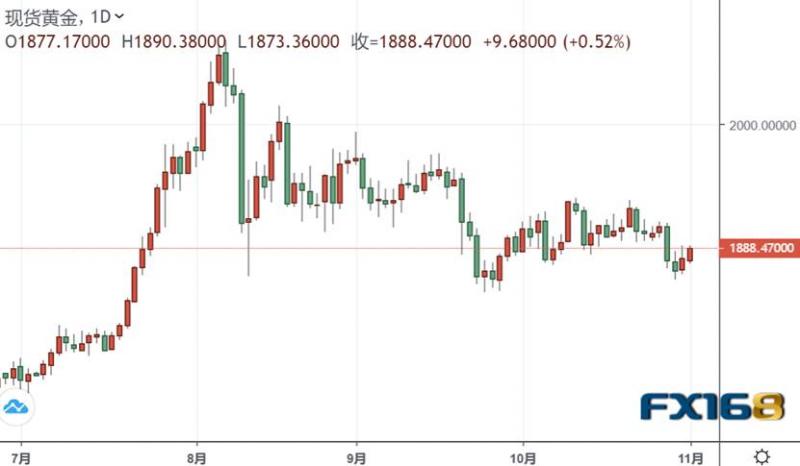 在新冠病毒引发新一轮封锁以及美国大选的担忧之下,投资者情绪偏向谨慎,现货黄金试图借机攀升,目前已经突破1880关口,最高触及1890美元。