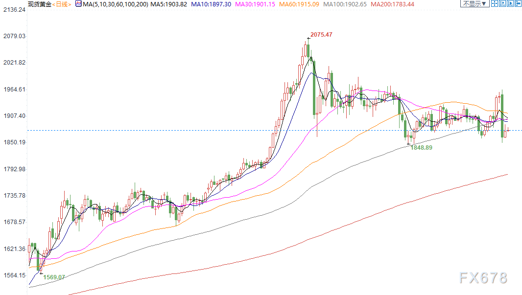 金价能回落到1900美元/盎司下方,但并未距离该水平太远,这显现出金价进入了新的技术走势中。黄金长期的目标比眼下的走势更重要,只不过现在很难说能涨到多高。