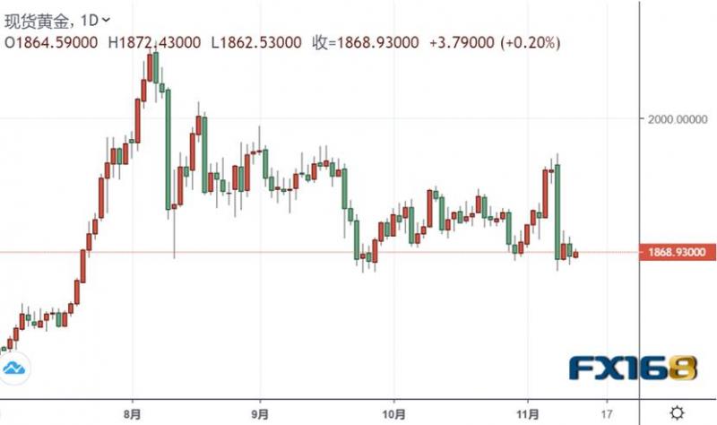 周四(11月12日)欧市盘中,现货黄金目前继续交投在1870美元附近,走势较为平静。