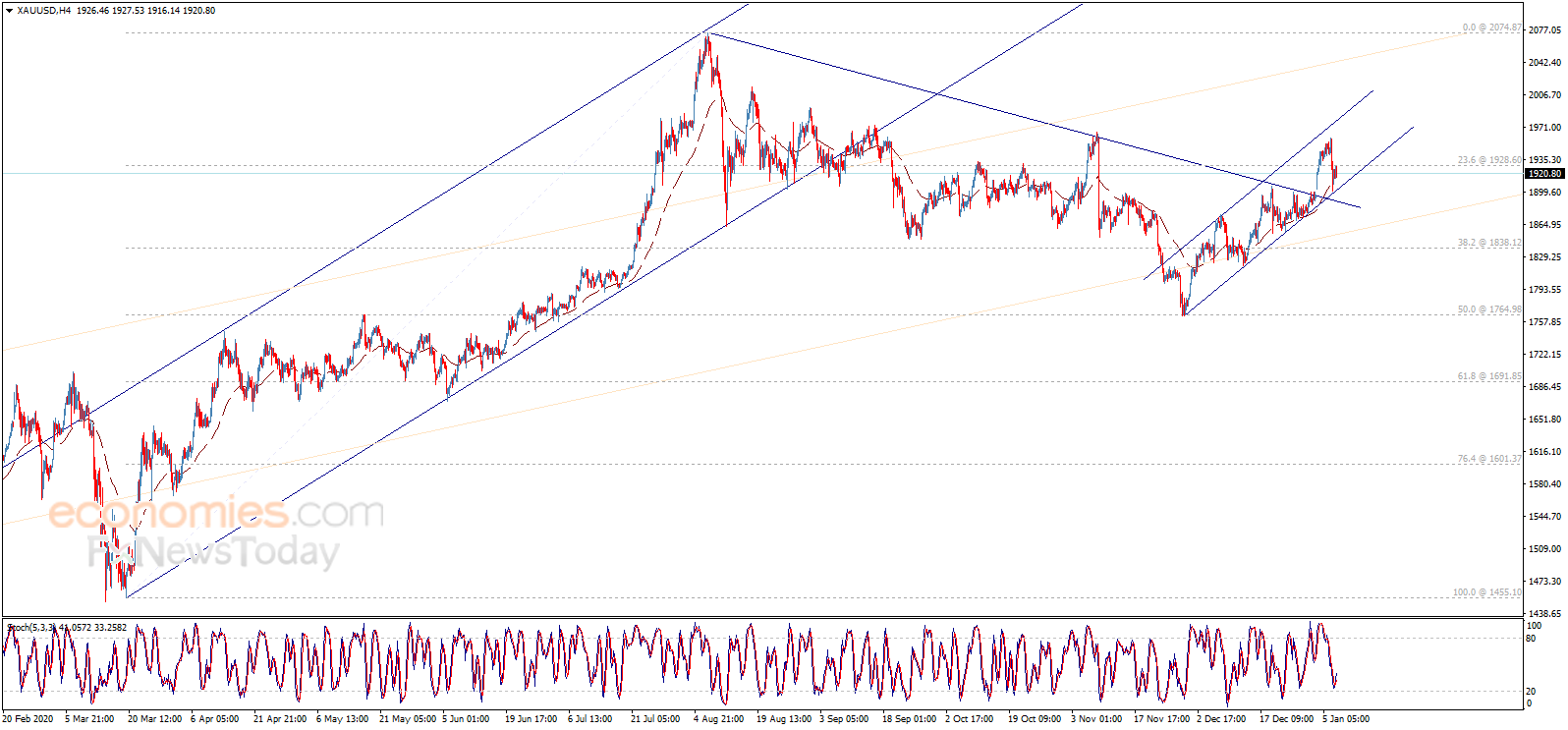 周五(1月8日)亚市早盘,现货黄金略微走低,金价现报1912美元/盎司附近。知名财经网站Economies.com撰文,对金价后市走势进行分析。