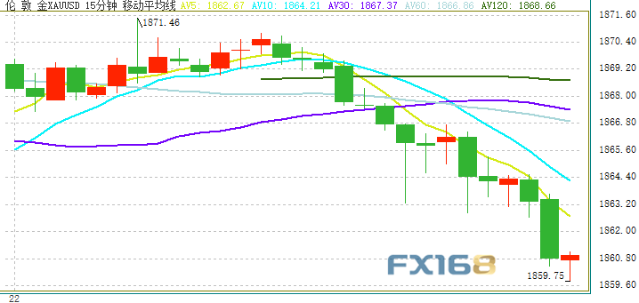 (现货黄金15分钟图 来源:)