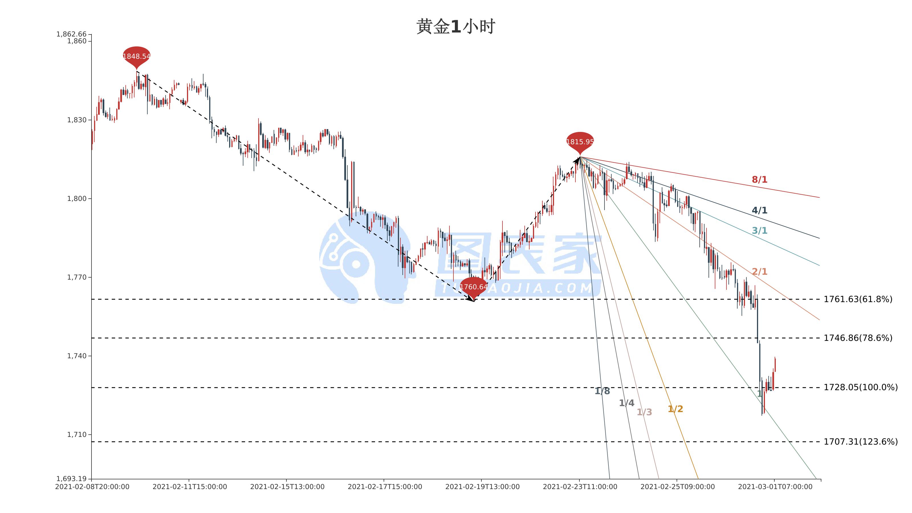 观点:1小时周期看跌,目标见1728.05(若价格突破1761.63,则观点失效)。