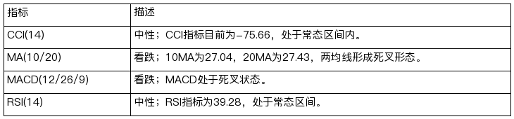 观点:4小时周期看跌,目标见26.41(若价格突破27.1,则观点失效)。