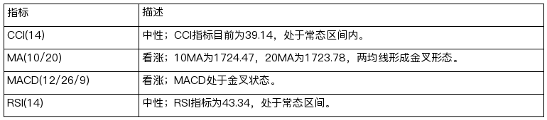 若价格上行,上方较近阻力位为1752.46,突破后或将测试斐波那契61.8%延展位1778.77阻力。