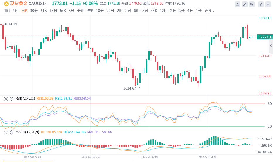 只有突破1783美元/盎司才能表明上升趋势的延续。在日线图上,1788美元/盎司阻力位上方的虚假突破也表明,从1615.59美元/盎司开始的上升趋势发生了逆转。