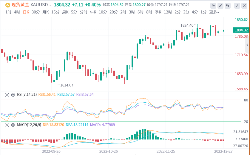 与此同时,美元指数挣扎着突破104.00相邻阻力后急剧下降至103.75附近,因为家庭支出放缓可能会迫使美联储今后削减加息幅度。10年期美债收益率进一步下跌至3.73%附近。