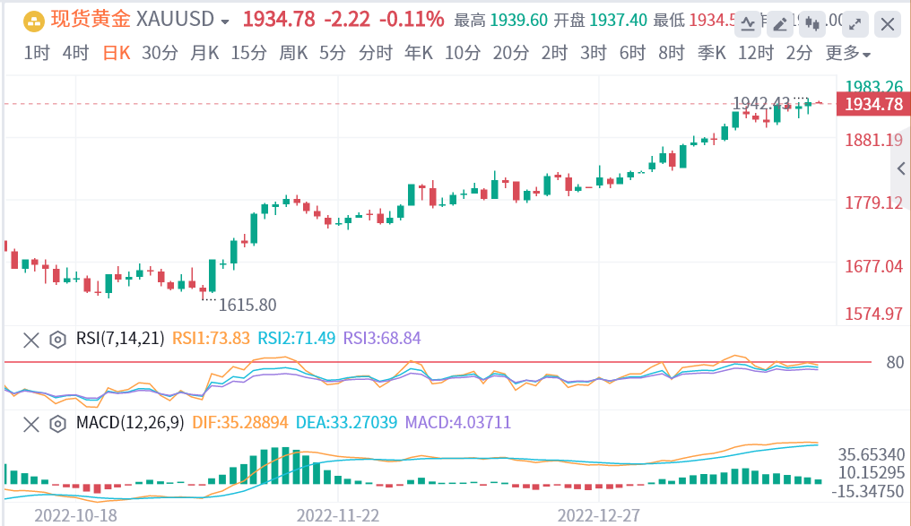 如果美国国内生产总值大幅收缩,可能会进一步增强美联储(Fed)在2月会议上小幅加息的预期,金价可能会获得动能。预期2022年第四季度国内生产总值将自前值3.2%收缩至2.8%。美元指数前景方面,加拿大帝国商业银行资本市场经济学家预计,原本强劲的美元将在2023年走软,因为美联储推出的利率路径将低于市场对联邦基金利率峰值的预期,同时焦点将转向其他发达经济体的政策收紧状况。