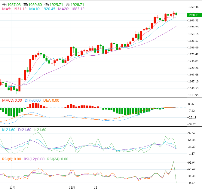 周三(1月25日)亚洲时段,现货黄金震荡微跌,目前交投于1931.60美元/盎司,过去两个交易日盘中,金价也一度出现回调走势,但很快受到逢低买盘的支撑,帮助金价守在近九个月高位附近,下周美联储利率决议前,金价后市仍保留继续震荡冲高的机会。