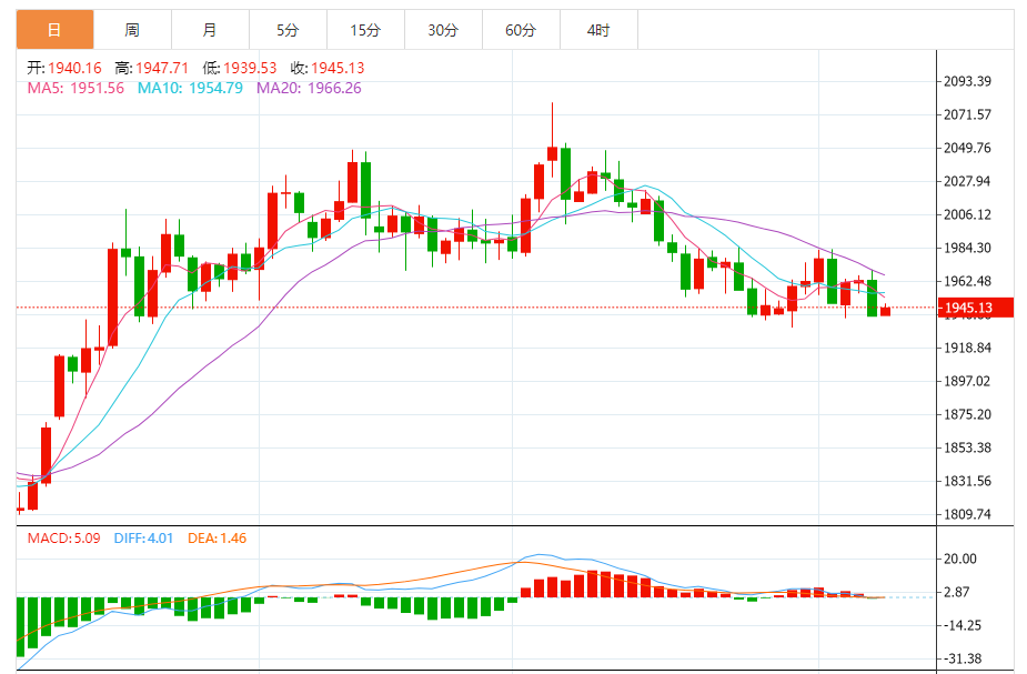 支撑位:1932.00美元/盎司;1918.00美元/盎司;1903.80美元/盎司