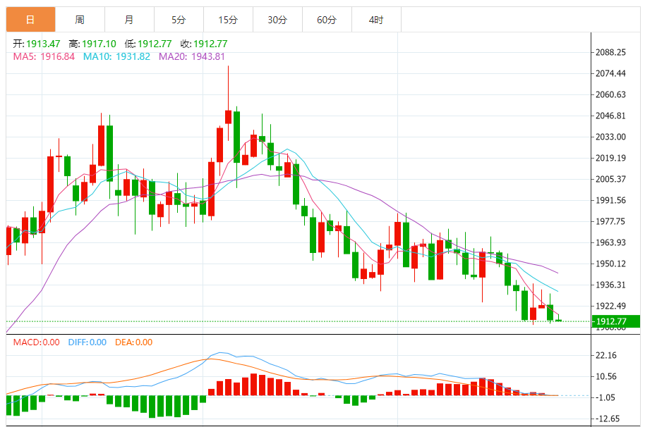 在失守1910关口前,仍需提防多头反扑,上方初步阻力惨了1920关口,10日均线阻力在1932.06附近,强阻力在100日均线1943.26附近,若能强势收复该位置,则增加后市看涨信号。