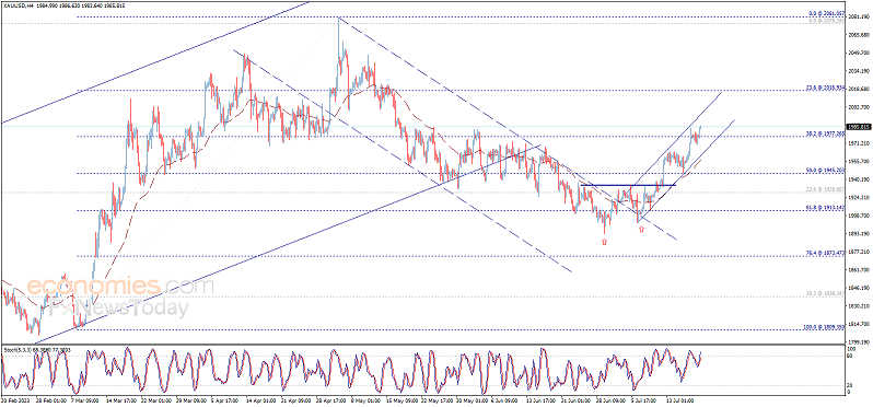 周四(7月20日),现货黄金维持日内反弹走势,金价现报1982美元/盎司附近。根据Economies.com,金价已经突破重要阻力1977.25美元/盎司,这为金价继续升势铺平道路。