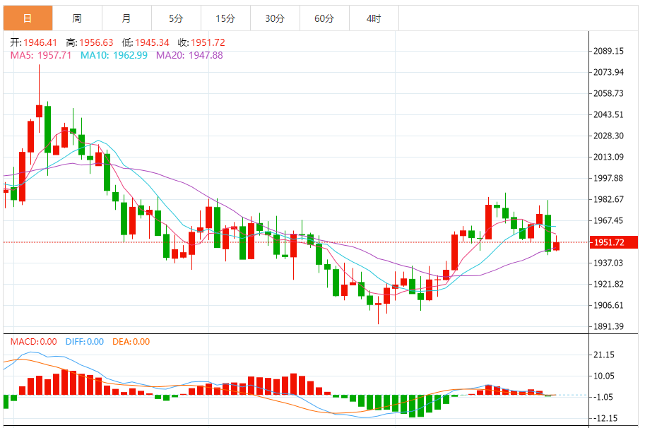 上方初步阻力在5日均线1957.61附近,关键阻力在100日均线1966.68附近,若能回升至该位置上方,则削弱短线看空信号。
