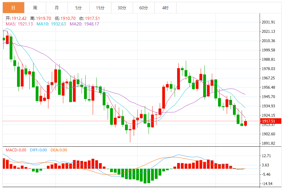 香港时间18:08,现货黄金报1917.96美元/盎司。