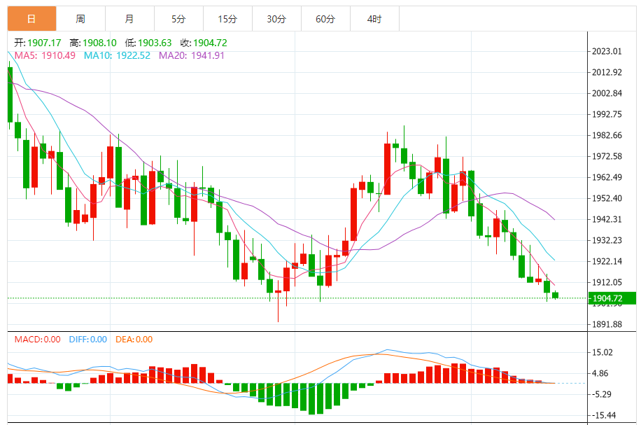 周二(8月15日),现货黄金维持日内跌势,金价目前位于1905美元/盎司附近。黄金价格继续向1900美元/盎司滑落。金价距离看跌突破已经并不遥远。