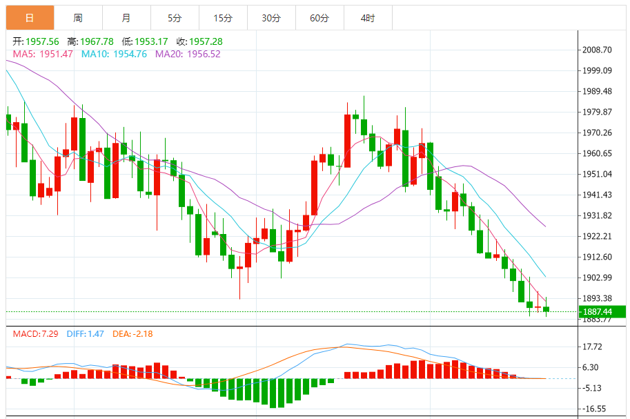 不过,KDJ已经初步结成金叉,K线显示金价下跌动能减弱,连续两个交易日录得接近“十字星”K线,暗示下方支撑较强,若金价能够回升至200日均线1906.55上方,则削弱短线看空信号;进一步阻力参考8月11日高点1920.78附近位置。