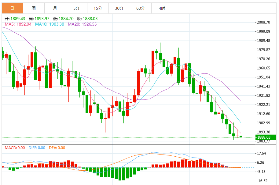 预计,今日金价交投将于支撑位1873.50美元/盎司以及阻力位1900.00美元/盎司之间。