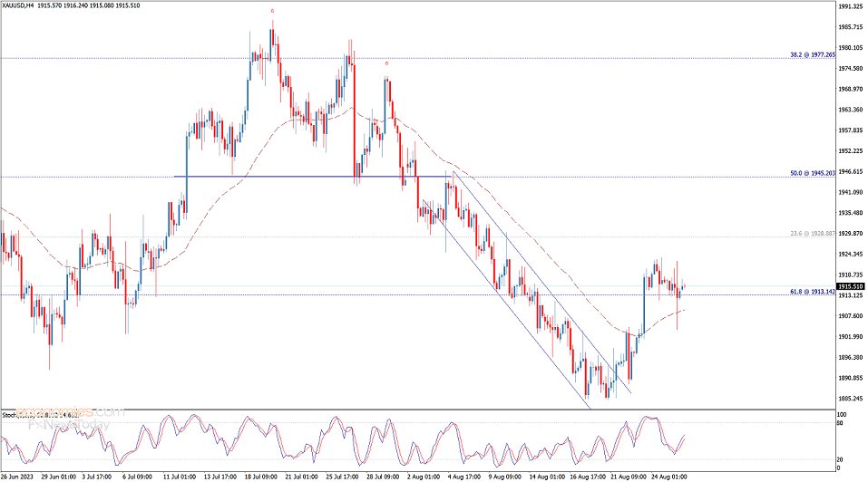周一(8月28日),现货黄金维持日内温和反弹走势,金价目前交投在1916美元/盎司左右。根据Economies.com,金价成功守住关键水平1913.15美元/盎司,这令金价前景继续看涨。