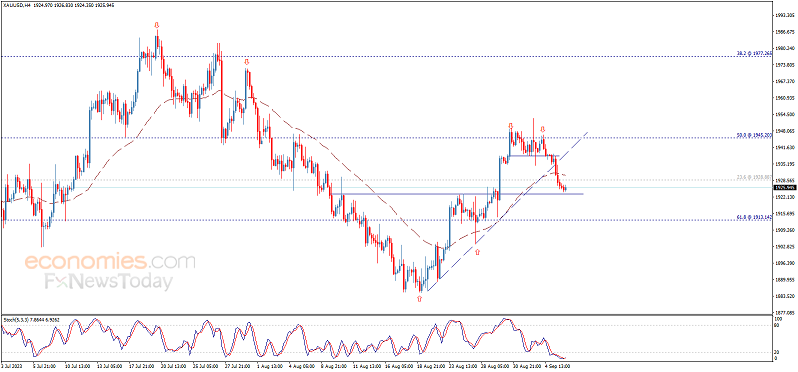 周三(9月6日)欧市早盘,现货黄金短线走低,金价目前正接近1923美元/盎司。根据Economies.com,金价在1923.00美元/盎司面临关键支撑,一旦失守该位,这将为金价进一步下跌打开空间。