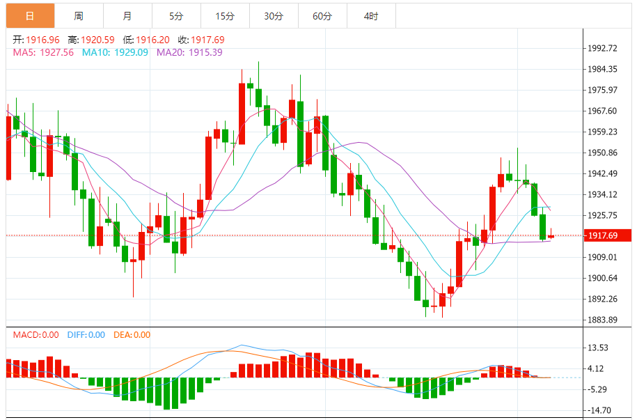 北京时间9月7日13:48 现货黄金 报 1918.39 美元/盎司