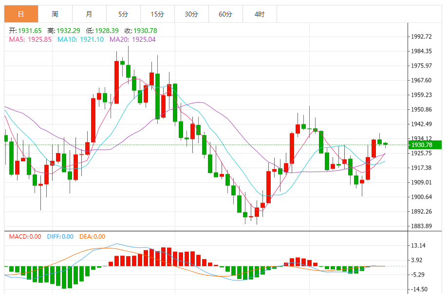 现货黄金在1930美元关口上方窄幅震荡,盘中一度涨至1937.43美元的日内高点,而后回吐全部涨幅并转跌,最终收跌0.13%,报1931.31美元/盎司。现货白银收跌0.22%,报23.20美元/盎司。