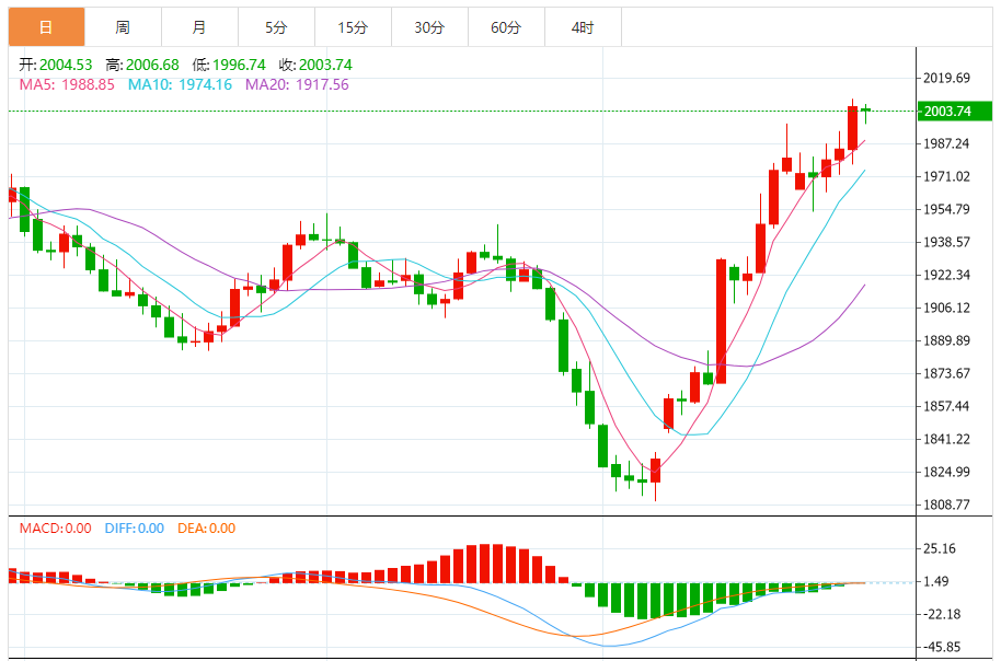 从目前的情况来看,黄金市场受到的地缘政治因素的影响仍然很大。一旦出现新的消息,黄金价格可能会出现快速上涨或下跌。但是,从技术角度来看,黄金价格在短期内可能难以真正下跌,更有可能的是高位震荡。预计下周黄金价格将继续冲高,暂时先关注2020的阻力位。在未能有大力度的方向波动之前,我们应维持多头单边的看法,不轻易尝试做空。隔夜美盘开盘阶段依旧呈现上行持续,大幅攀升借助周五收尾上升到2000关口价格之上,尚未出现回落预期。这进一步说明短期的多头力度依旧较强,因此,我们应整体上保持多头预期。