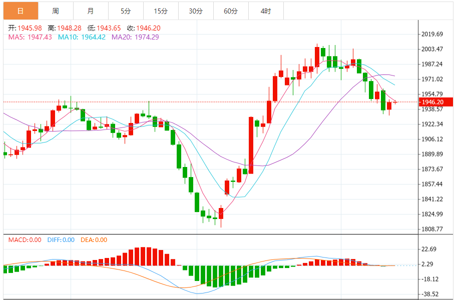 今天的预期交易区间:在1925.00支撑和1955.00阻力之间。