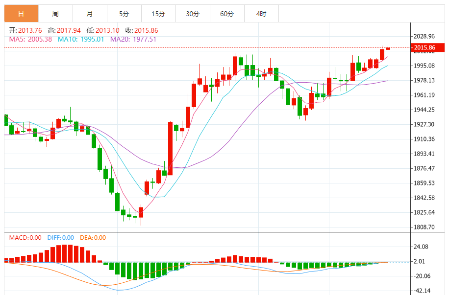 今天的预期交易区间:在2000.00支撑和2035.00阻力之间。