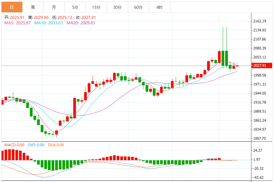 预计今天的交易区间:在2015.00支撑和2050.00阻力之间。