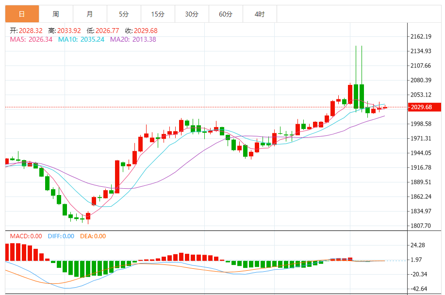 预计今天的交易区间:在2015.00支撑和2050.00阻力之间。