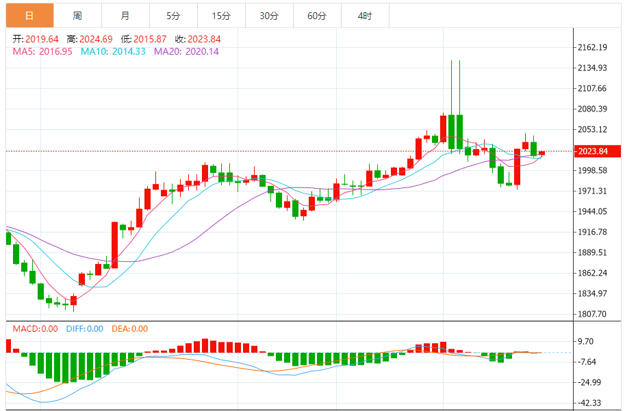 今天的预期交易区间:在2010.00支撑和2045.00阻力之间。