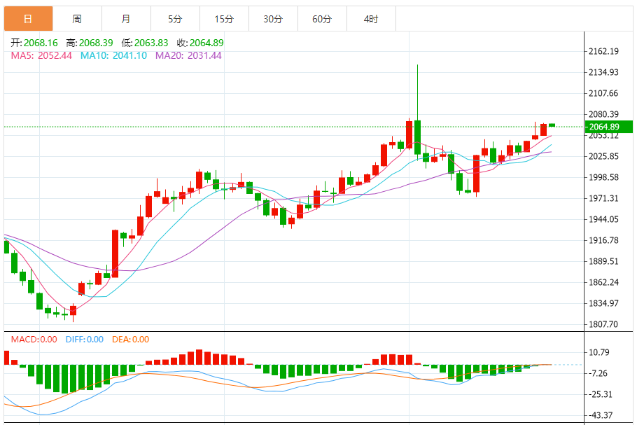 预计今天的交易区间:在2050.00支撑和2085.00阻力之间。