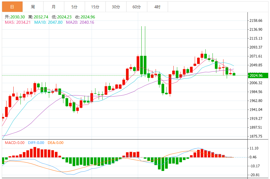 今天的预期交易区间:在2010.00支撑和2045.00阻力之间。