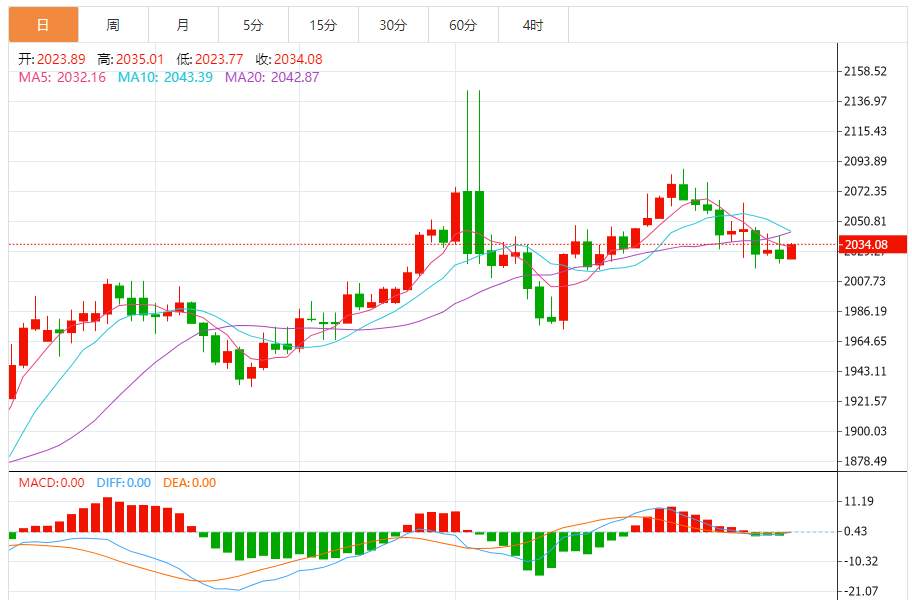 预计,今日金价交投将于支撑位2010.00美元/盎司以及阻力位2040.00美元/盎司之间。