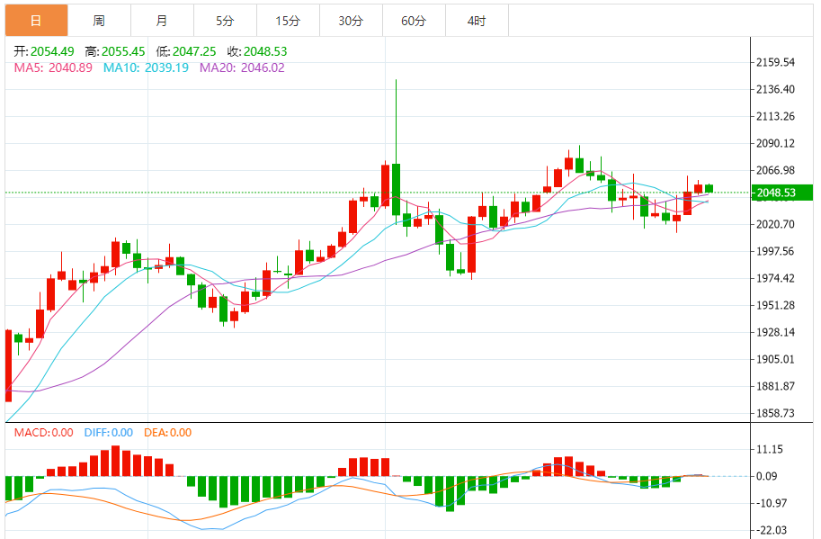 预计,今日金价交投将于支撑位2030.00美元/盎司以及阻力位2070.00美元/盎司之间。