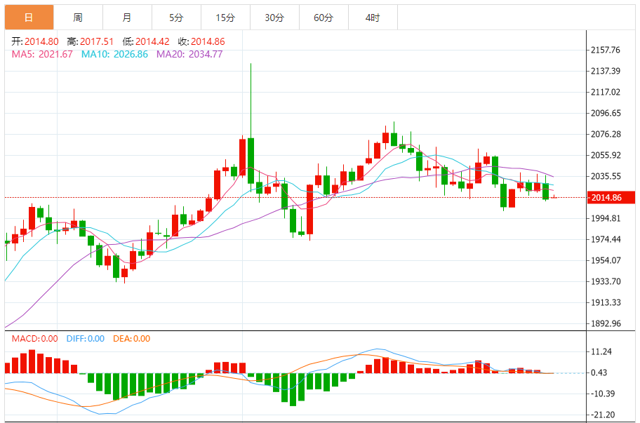 今天的预期交易范围:在2000.00支撑和2035.00阻力之间。