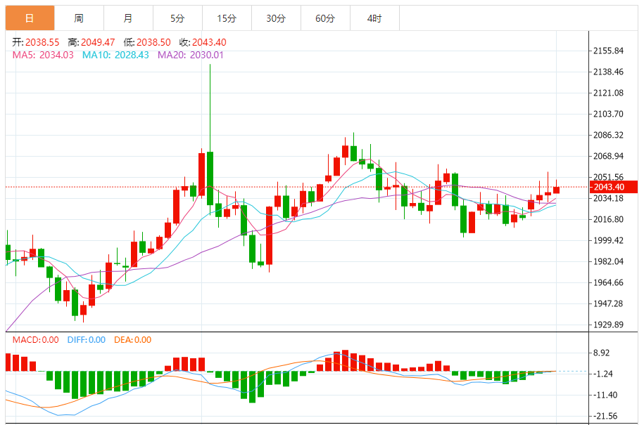 今天的预期交易范围:在2030.00支撑和2065.00阻力之间。