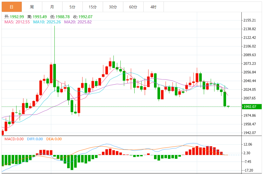 今天的预期交易范围:在1970.00支撑位和2005.00阻力位之间。
