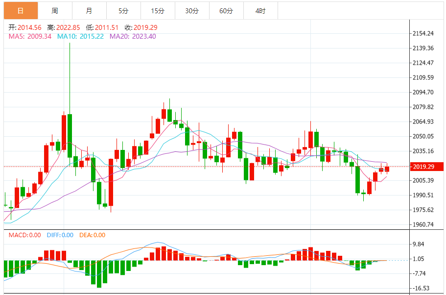 今天的预期交易范围:在2005.00支撑和2035.00阻力之间。