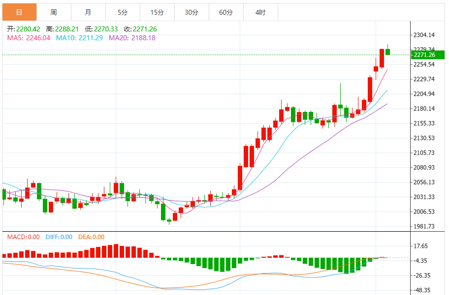 预计,今日金价交投将位于支撑位2270.00美元/盎司以及阻力位2305.00美元/盎司之间。