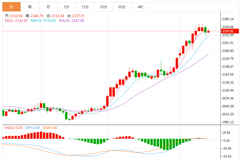 预计,今日金价交投将于支撑位2335.00美元/盎司以及阻力位2370.00美元/盎司之间。