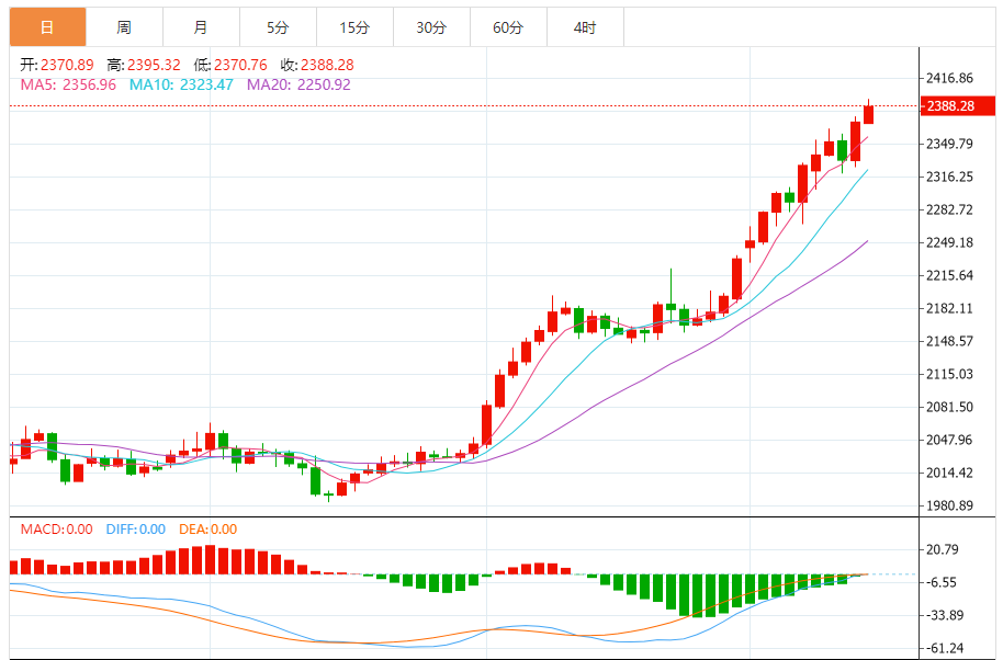 今天的预期交易范围:在2375.00美元支撑位和2415.00美元阻力位之间。