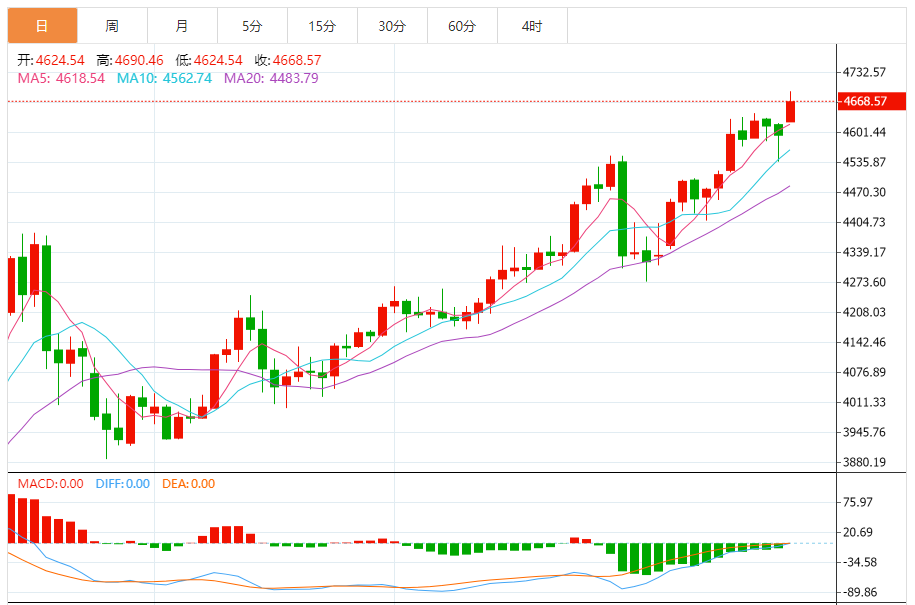 周二(1月19日),现货黄金目前位于4669.24美元/盎司附近,涨幅为1.60%。