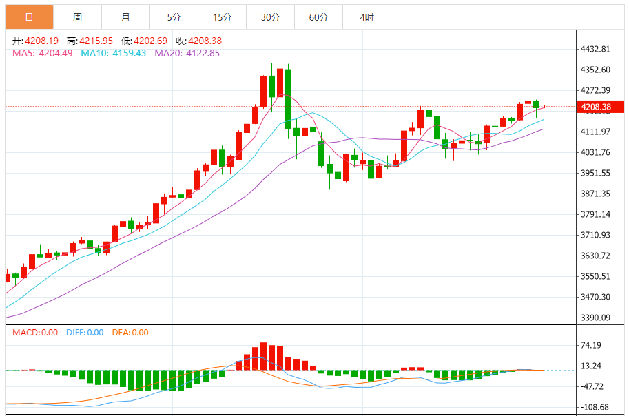 基本消息面 周二(12月2日)纽约尾盘,现货黄金跌0.57%,报4208.04美元/盎司,日内持续震荡下跌,北京时间22:30美股开盘之前反弹至4230美元上方——几乎完全收复日内稍早失地,随后又快速下挫,23:58刷新日低至4163.95美元。COX黄金期货跌0.77%,报4241.90美元/盎司,全天处于下跌状态,23:58也刷新日低至4194
