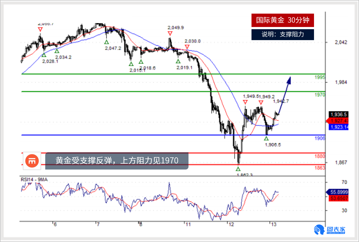 RSI技术指标上,看涨。