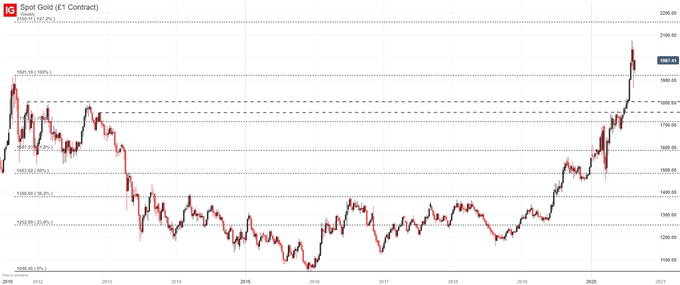 作为一种投资品,黄金通常被视为是一种抗通胀的潜在对冲工具;在波动性时期黄金可以提供避险归处。因此,以下这些状况——由新冠肺炎疫情引发的波动环境、低利率以及正在扩张的央行资产负债表——应会转化为对黄金这一贵金属的需求上升,进而推动金价上涨。很多分析师跟评论人士已经将2020年黄金价格的上涨归因于这些主题,对多头而言幸运的是尽管最近金价有所下跌但同样的顺风(助推因素)依然存在。