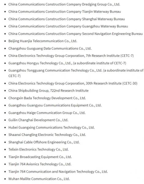 周三,特朗普政府将24家中国公司列入禁止购买美国产品的政府名单,理由是它们帮助中国军方在有争议的南海建造人工岛。