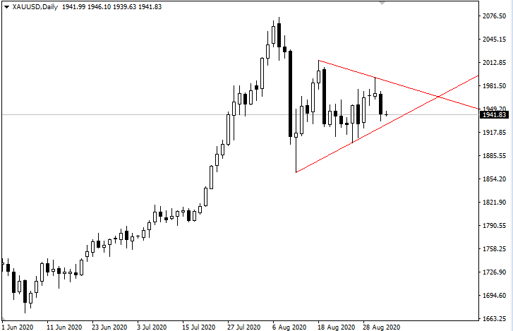 周三公布的最新一期ADP数据不及预期,但是黄金短线拉升之后无法突破日内阻力,导致抛售盘明显涌现。8.18以来形成的三角形整理区域继续在范围内运行和波动。