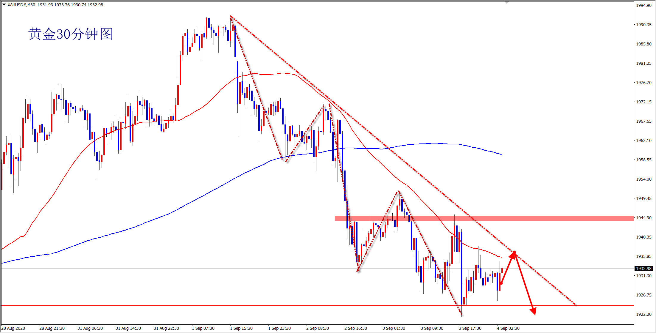 欧盘操作思路:黄金1945空,保护1953,目标1935-1925