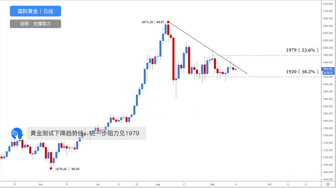 观点:日线看涨,关注下降趋势线。(跌破1920则观点失效)